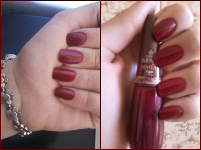 Eu estava esquecendo de tirar as fotos, confesso, lembrei uma hora que esperava meu pai no carro, por isso a foto ta assim gente, mas vamos la. Fiz um contraste entre um esmalte fosco e um perolado.Usando: Tubinho (fosco), da Risqué, e o Vermelho de guerra (perolado), da Impala – coleção SPFW.