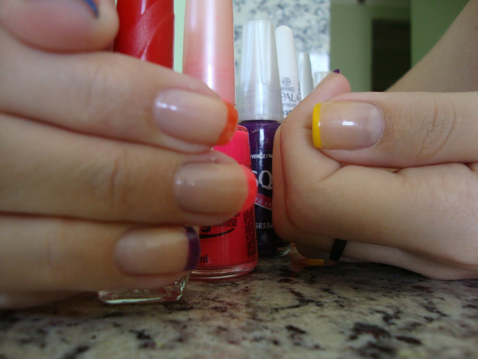 Laranja ( Impala ), Amarelo Sol ( Colorama ), Azul Hortênsia ( Risqué).