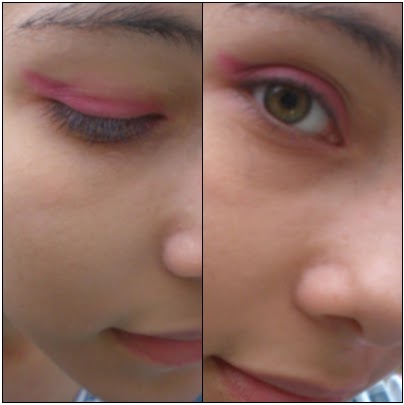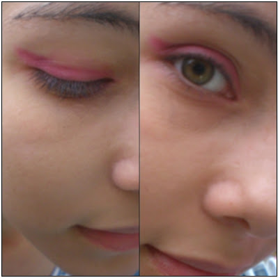 Depois apliquei primer facial da Cometém 1g apenas nos olhos e com o uso de um pincel chanfrado e uma sombra rosa de uma marca pouco conhecida a Qianyu e da T&G tango, passei o pincel rente aos cílios fazendo um leve pontinha lateral,para dar aqele efeito de olho de gatinho.